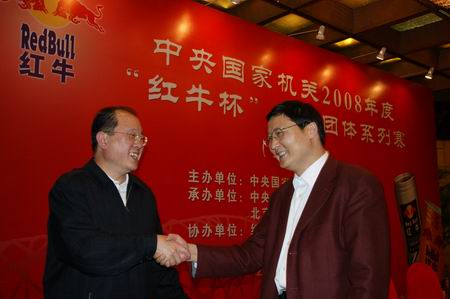 主办方中央国家机关桥协秘书长徐双未与协办方红牛维他命饮料有限公司副总经理张立刚相约下站再见