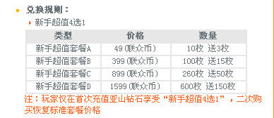 每个服务器中,玩家在《七龙纪》商城首次兑换亚山钻石可享受“超值4选1特惠套餐”。所充的钻石数量越多,获赠钻石数量越多。各服务器单独校验,即每个用户在每个服务器都可以享受一次充值特惠!