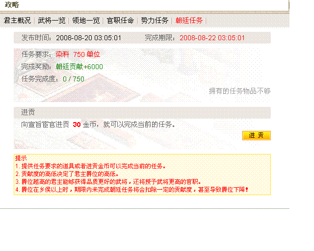 完成朝廷任务可以提供你的爵位