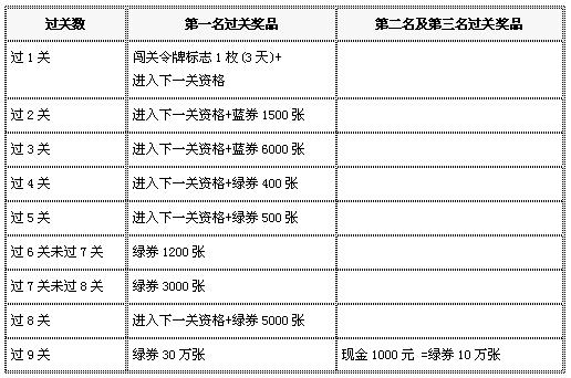 用户每闯过一关,系统会自动将相应的奖券发到账户上面。奖券数量可以累计,在兑奖页面上面可以查询相应的数量,并可以直接兑换相应的奖品。