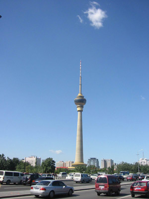中央电视塔,坐落于北京西三环中路,东临秀美的玉渊潭和著名的钓鱼台,南靠新建的西客站,北瞰旅游胜地颐和园,占地15.4公顷,塔高405米,是中国第三高塔。中央电视塔是集广播电视发射和旅游观光、餐饮、娱乐为一体的高科技的综合性建筑,宽阔的栈桥广场,汉白玉的退台环廊,宫灯型的塔楼,祈年殿式的塔座,完美地再现了中国古代的建筑风格和展现了现代建筑的精湛。