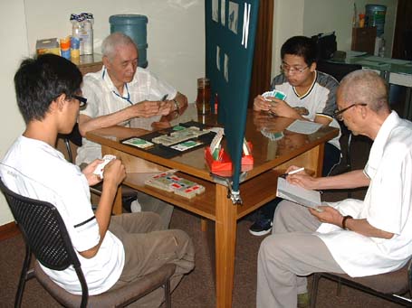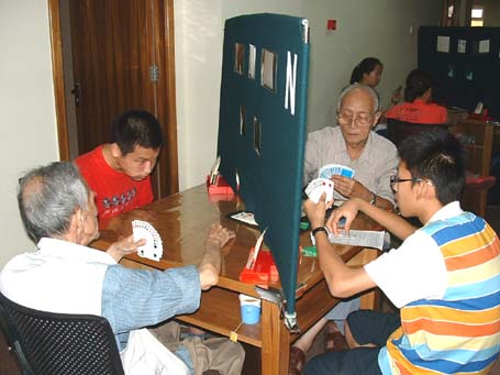 元老一队的蔡公期和龚启英先生在与人大附中小牌手比赛