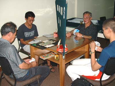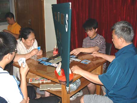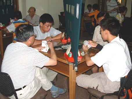 7月27日下午,北京桥牌活动中心迎来了北京中学生桥牌夏令营的同学们,这些小牌手来自人大附中、四中和十二中,他们来活动中心是与北京老年桥牌联谊会的爷爷奶奶进行桥牌友谊赛。小牌手学桥牌的时间不长,但已经深深地被桥牌的魅力所吸引,这次利用暑假参加桥牌夏令营,一方面是为了提高牌技,同时也是为参加全国中学生桥牌比赛做赛前训练。