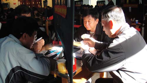 本周进行的是两场预赛。今天有19支市直机关的代表队参加A组预赛,经过5轮每轮10副牌的瑞士移位赛,前16名进入11月28日的决赛(详细成绩见本站成绩公布)。明天将进行B组的比赛。